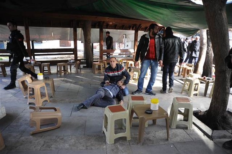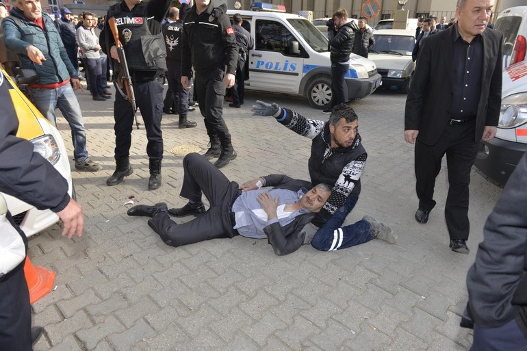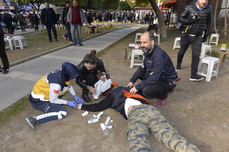 Kanlar içinde kalan şahıslara ilk müdahaleyi polis yapıp ambulans çağırdı. Ortalığın savaş alanına döndüğü olayda yaralananlar ambulanslarla hastanelere sevk edildi. Bu arada, iki taraf birbirine tekrar saldırdı. Polis bunun üzerine çok sayıda kişiyi gözaltına aldı. Yaralı bir kişinin ise sürekli telefonda görüşmesi dikkat çekti.