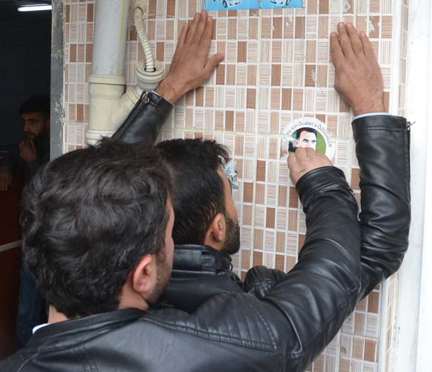 Öcalan'ın fotoğrafının olduğu etiketi polis tırnağıyla söktü