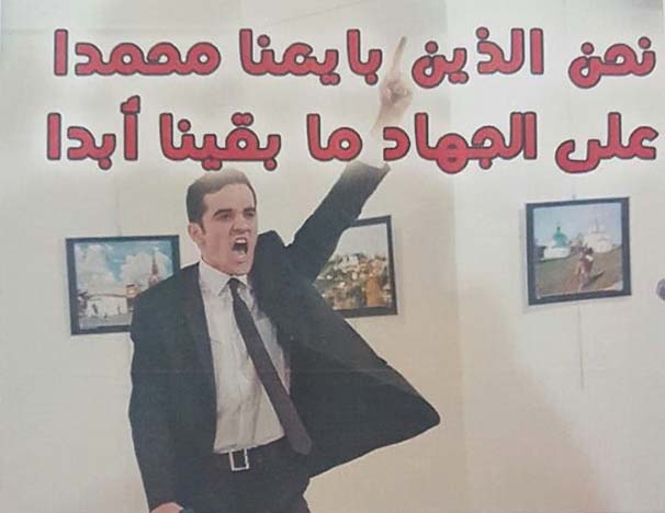 Şüphelilerden elde edilen görsel materyaller arasında idam edilen eski Irak lideri Saddam Hüseyin'in ve Rusya Ankara Büyükelçisi Andrey Karlov'u öldüren FETÖ üyesi olduğu iddia edilen polis memuru Mevlüt Mert Altındaş'ın üzerinde Arapça "Biz cihat üzerine Muhammed'e biat ettik, beklentimiz kalmadı" yazılı fotoğraf bulundu.