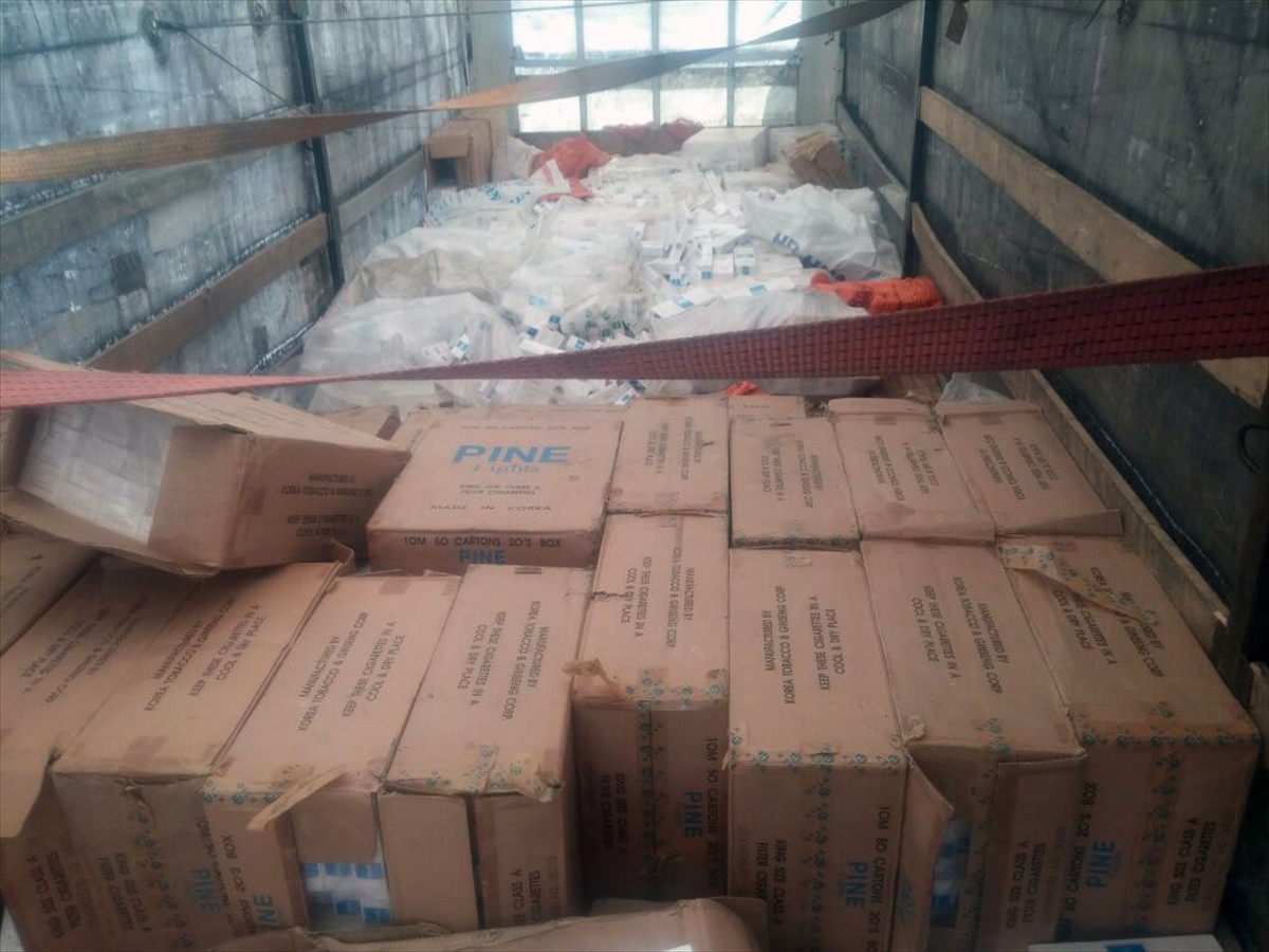 Ekiplerce tırda yapılan aramada, 170 bin paket kaçak sigara bulundu.