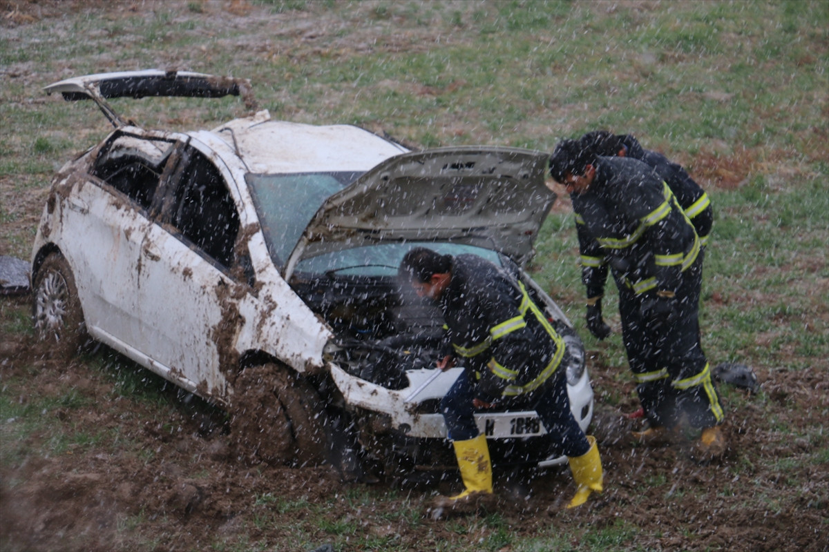 Kahta ilçesi Mülk ve Güzelçay köyleri arasında Ramazan Polat (20) yönetimindeki 63 M 1888 plakalı otomobil, karlı yoldan tarlaya yuvarlandı.