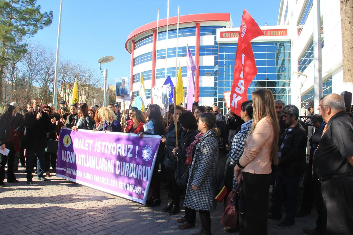 Bir süre adliye dışındaki kaldırımda slogan atıp basın açıklaması yapan gruptan bazıları, daha sonra Adıyaman Ağır Ceza Mahkemesi'nde görülmeye başlayan duruşmaya katıldı.