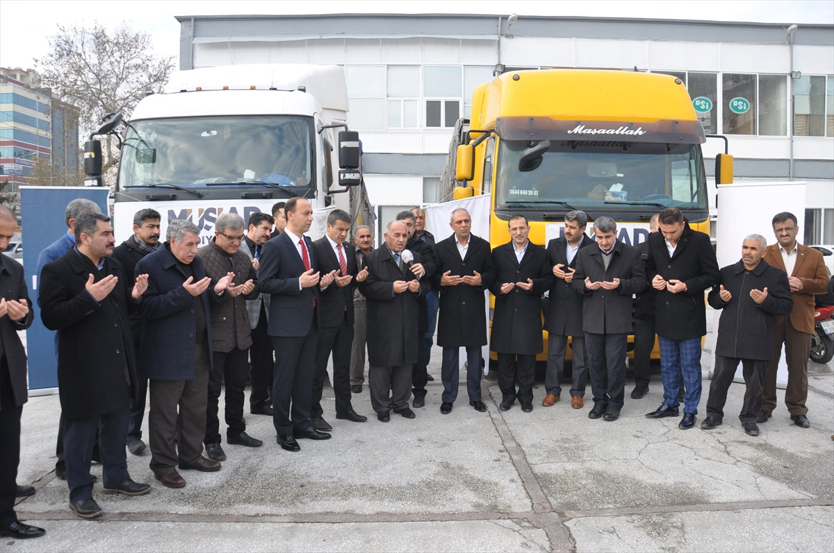 Törenin ardından yardım malzemelerinin yüklendiği 2 tır, Suriye'nin İdlip kentine gönderildi.