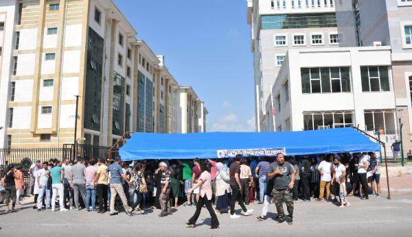 Bu yılın ilk 4 ayında adliyelere 2 bin 800 personel alan bakanlık, ek olarak 500 personel alımı için harekete geçti. Bu personelden 327'si Antalya Adliyesi'nde istihdam edilecek. İş başvurusu için sabah erken saatlerde Antalya Adliyesi'ne gelen yüzlerce kişi, sıcak havada uzun kuyruklar oluşturdu. 327 kişinin alınacağı kadro için 2 bin 67 kişi uygulamalı ve sözlü mülakat için kayıt yaptırdı. Antalya Büyükşehir Belediyesi'nin kurduğu çadırlarda ve yolda kendilerine sıra gelmesini bekleyenleri aileleri de yalnız bırakmadı. Kimisi adliye önünde dua ederken, kimisi de kaldırımda klavye ile yazım tekniğini geliştirmeye çalıştı.