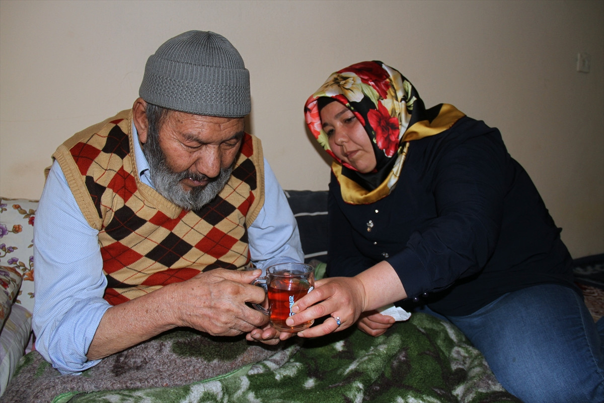 "Anne ve babamın şeker hastalığı vardı. Babam yaklaşık 3 yıl önce şekeri yükselince felç olup yatağa düştü. Babama, annemle beraber bakıyorduk. Annem 1,5 yıl önce kalp krizinden vefat etti. Artık babamın tüm ihtiyaçlarını ben karşılıyorum. Babamı Erzurum'a götürdüm, 15 gün yatırdılar. Şekerinin yanında bir de KOAH hastası. Devletin yardımıyla oksijen cihazını aldık. Allah babama uzun ömür versin. Onlar bizlere bu yaşa kadar baktı. Ben de elimden geldiğince, şikayet etmeden bakacağım."