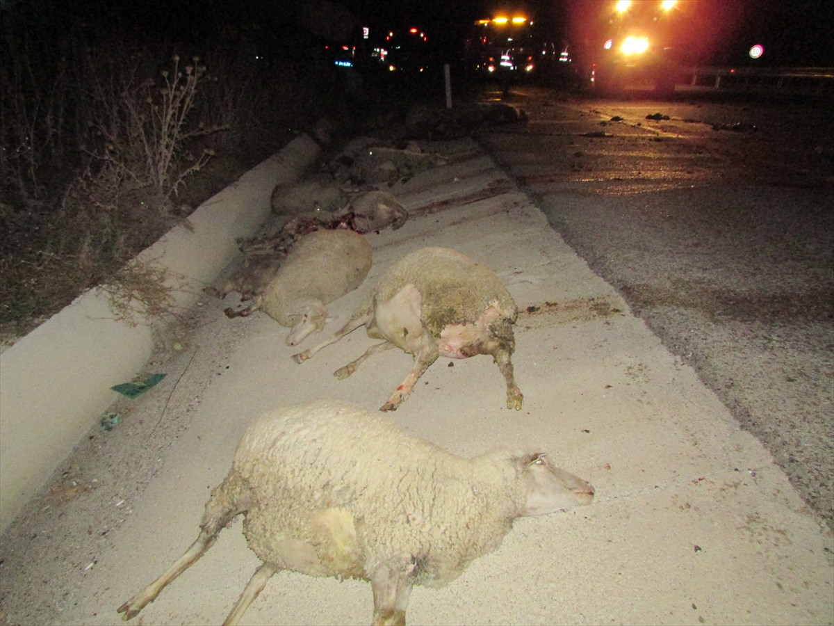 Kazada, İmdat Özaydın'a ait 30 koyun telef oldu. Koyunlar, itfaiye ve karayolları ekipleri tarafından yol kenarına çekildi.
