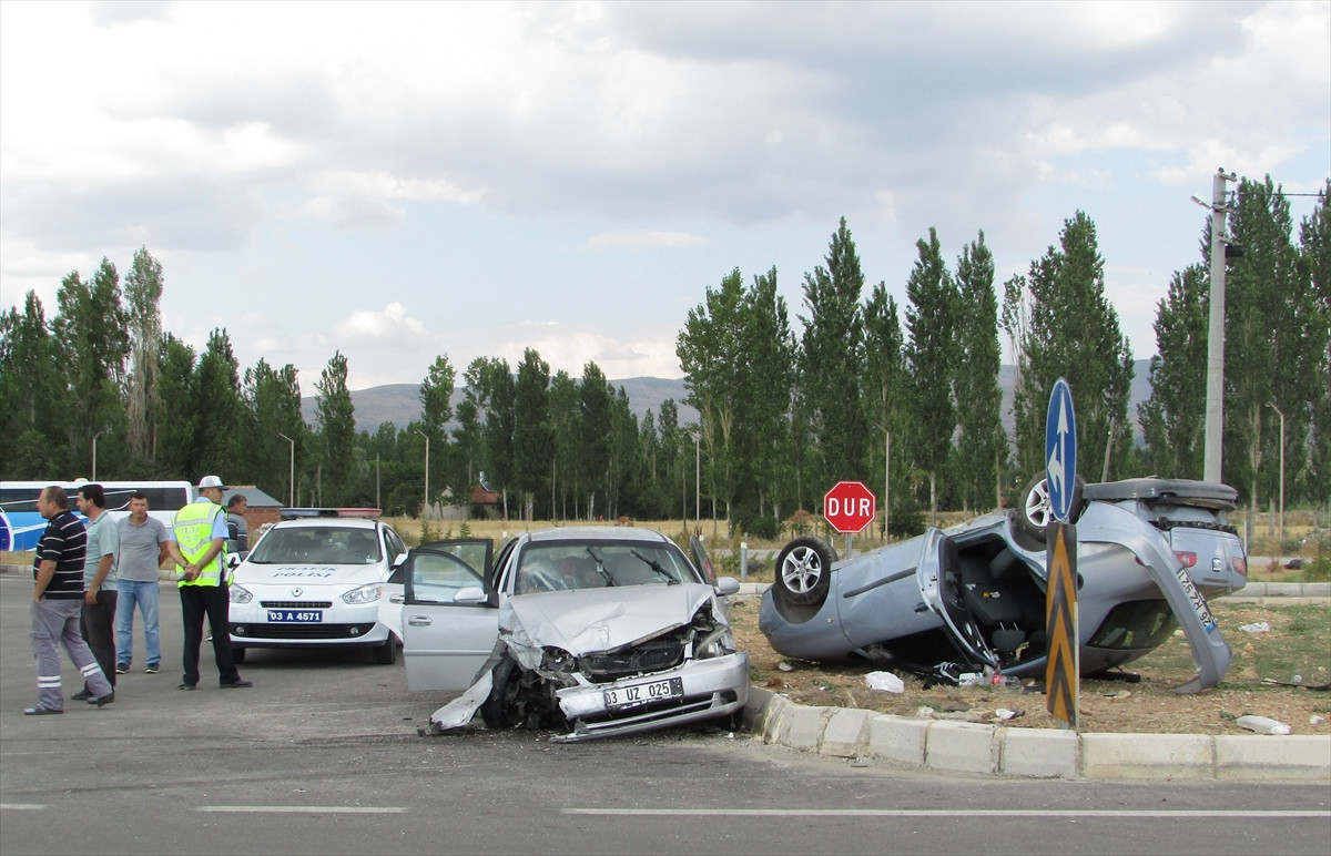 Alınan bilgiye göre, Aydın Nefesoğlu (66) idaresindeki 26 RZ 921 plakalı otomobil, Sandıklı karayolunun 50. kilometresinde, Halit Baş yönetimindeki 03 UZ 025 plakalı otomobille çarpıştıktan sonra devrildi.