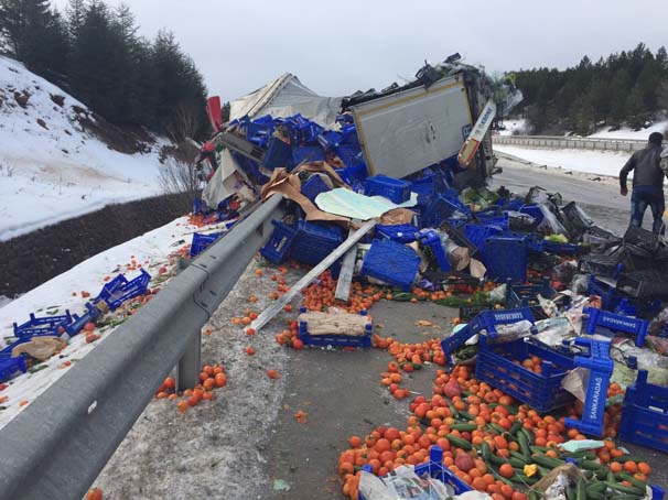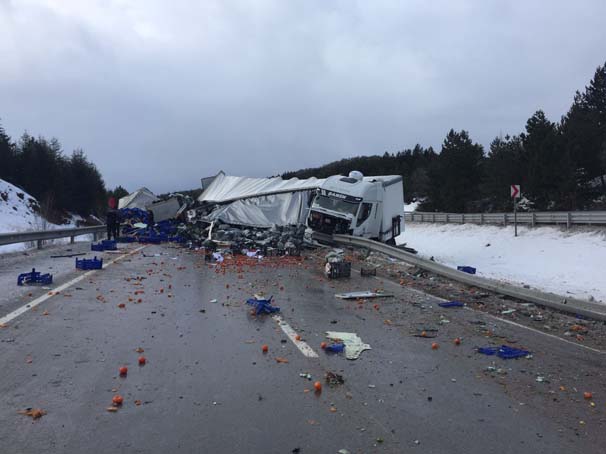 Kazaya karışan TIR sürücülerinden Halil Erkan Şahin, yoldaki buzlanmadan dolayı aracın direksiyon hakimiyetini kaybettiğini belirterek, "Önümdeki TIR'ın kaydığını gördüm. Frene bastım ama yol çok buzlu olduğu için kaza yaptık." dedi.