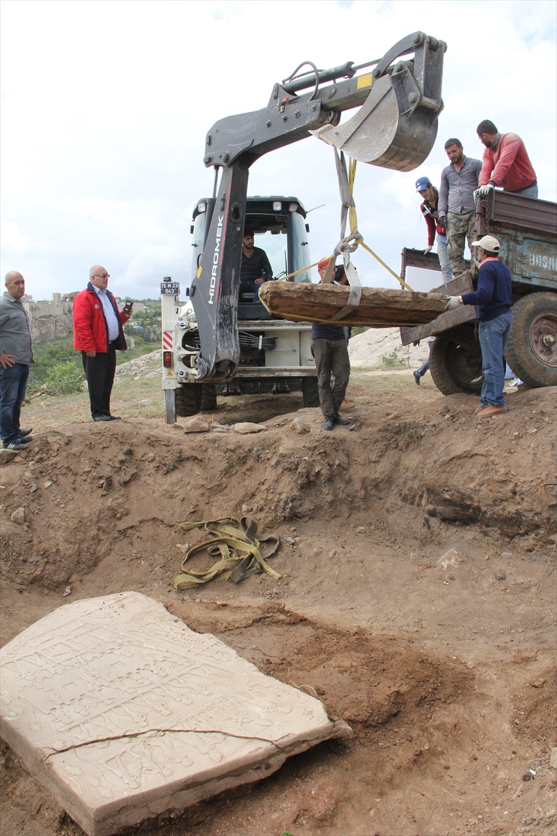 Çatlaklar oluşan ve üzerinde insan, hayvan, nehir, kale ve savaş figürleri bulunan 5 metrekarelik taş kabartma, arkeologların titiz çalışması sonucu kazı yerinden alınarak müzeye götürüldü.