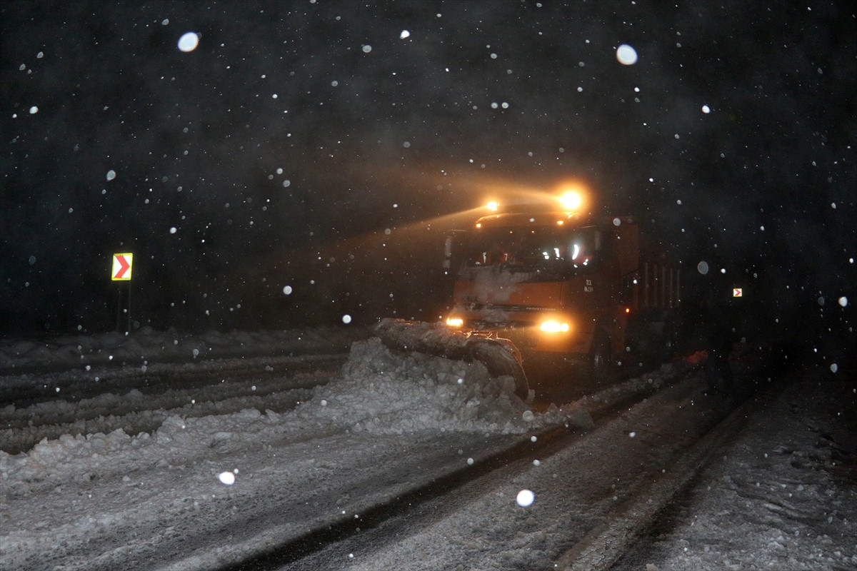 Yoğun kar yağışı, çok sayıda aracın yolda kalmasına neden olurken, yol gece saatlerinde araç trafiğine kapatıldı.