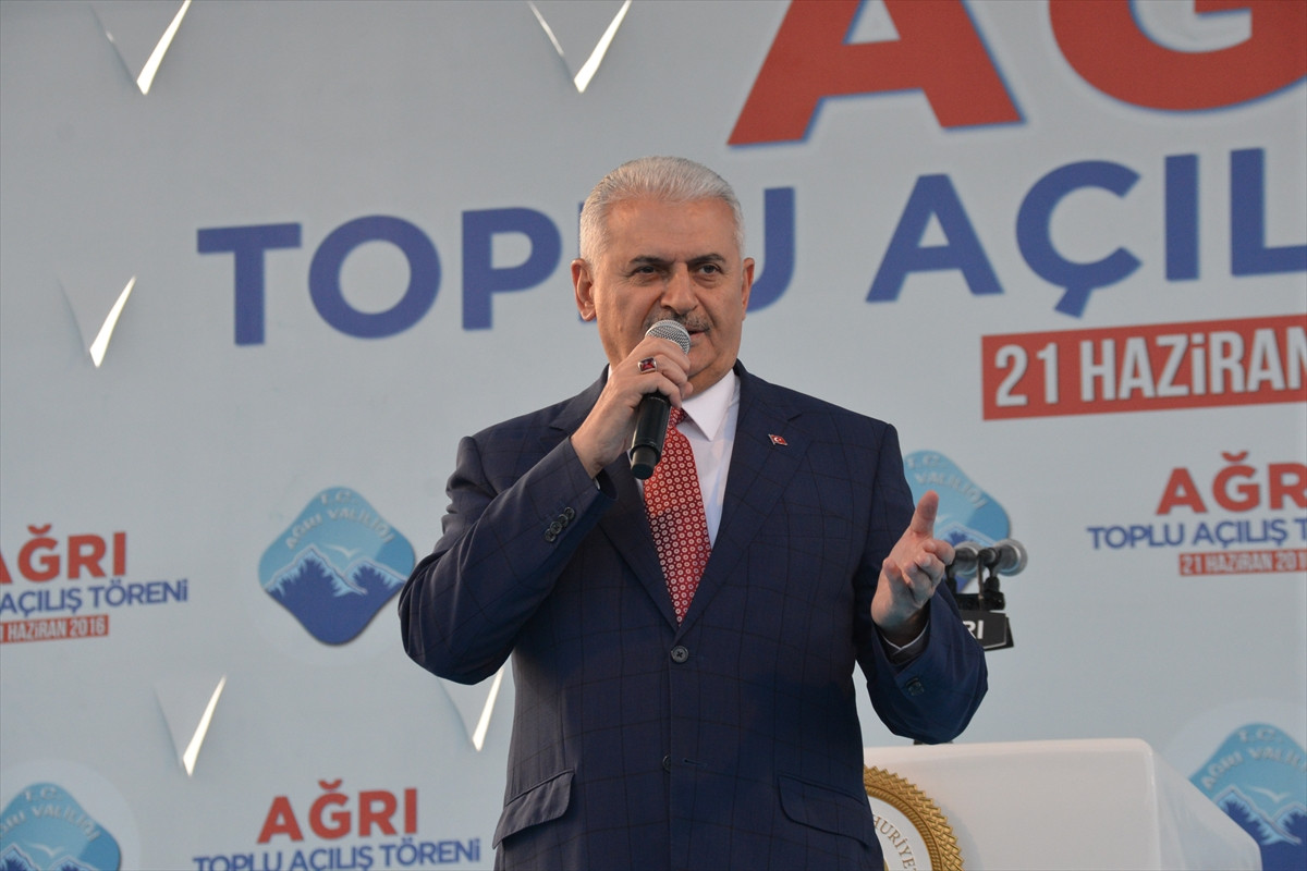 Yıldırım, destekleri için Ağrılılara teşekkür ederek, "Siz terör örgütüne yüz vermediniz, hendeklere izin vermediniz, onlar 'Böleceğiz' dedi, siz 'tek Türkiye' dediniz. Onun için sizlere teşekkür ediyorum." diye konuştu.