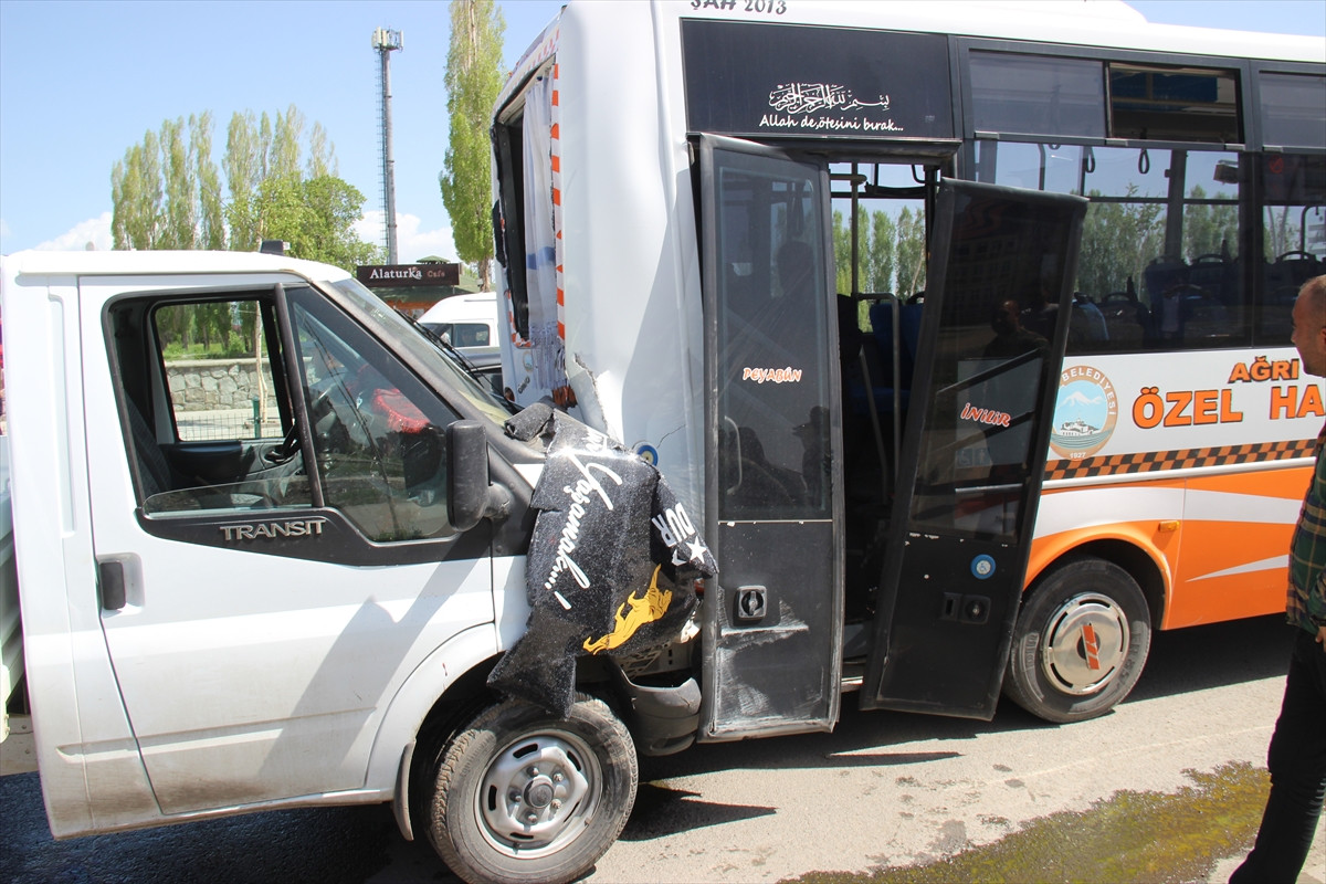 Alınan bilgiye göre, Gökmen Işık'ın (37) kullandığı 04 AN 110 plakalı kamyonet, Ağrı Belediyesi önünde aynı yönde seyreden Volkan Demir (28) idaresindeki 04 Z 0067 plakalı halk otobüsüyle çarpıştı.