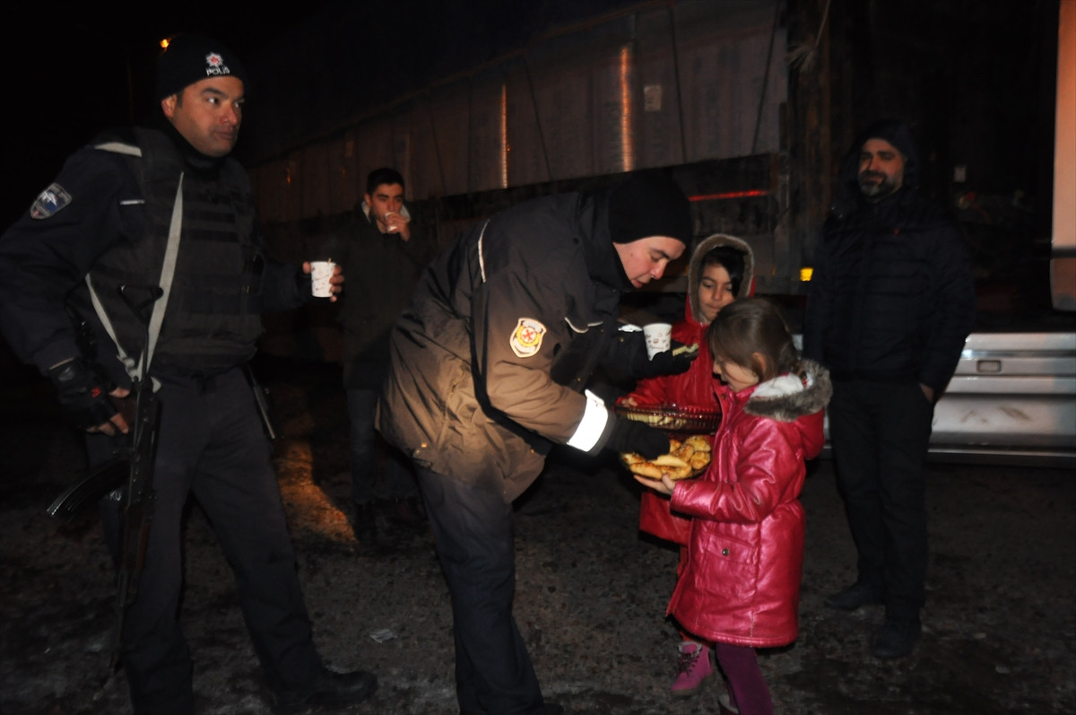 Uygulamada durdurulan araç sürücülerine de ikramda bulunan gazeteciler, şoförlere sıcak çay, kek ve poğaça ikram etti.