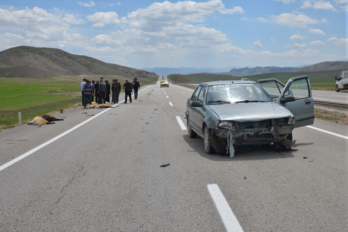 Kazada, 10 koyun telef oldu, otomobilde hasar meydana geldi.
