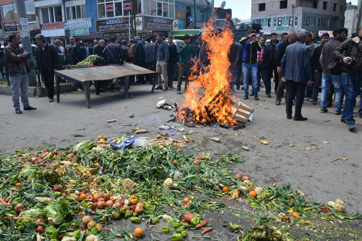 Ağrı Sebze Pazarı'nda faaliyet gösteren esnaf, kentte kayıt dışı sebze-meyve satışı yapılması nedeniyle haksız rekabetle karşı karşıya kaldıkları gerekçesiyle tepki için Eski Van Caddesi'nde toplandı. Esnaf, tezgahlarındaki sebze ve meyveleri yola dökerek ve ateş yakarak caddeyi ulaşıma kapattı.