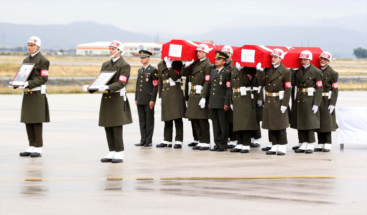 Şehitlerin öz geçmişlerinin okunması ve dualar edilmesinin ardından, tören mangası tarafından omuzlarda taşınan şehitlerin naaşı, Türk Silahlı Kuvvetleri'ne ait uçağa konuldu.