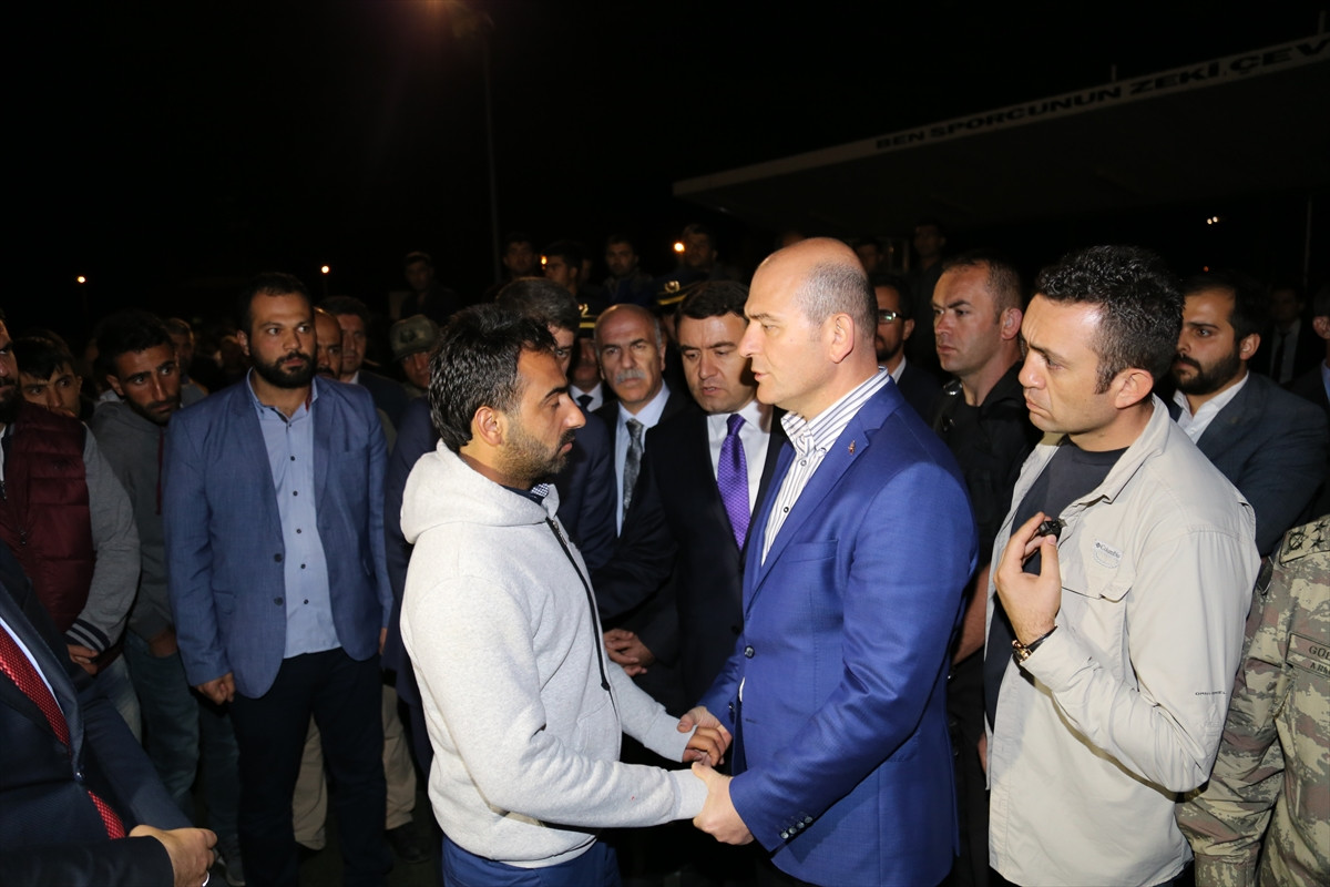 Şehitlerin öz geçmişleri okunduğu sırada yakınlarından bazıları sinir krizi geçirdi. Bakan Soylu, şehit yakınlarını sakinleştirmeye çalıştı.