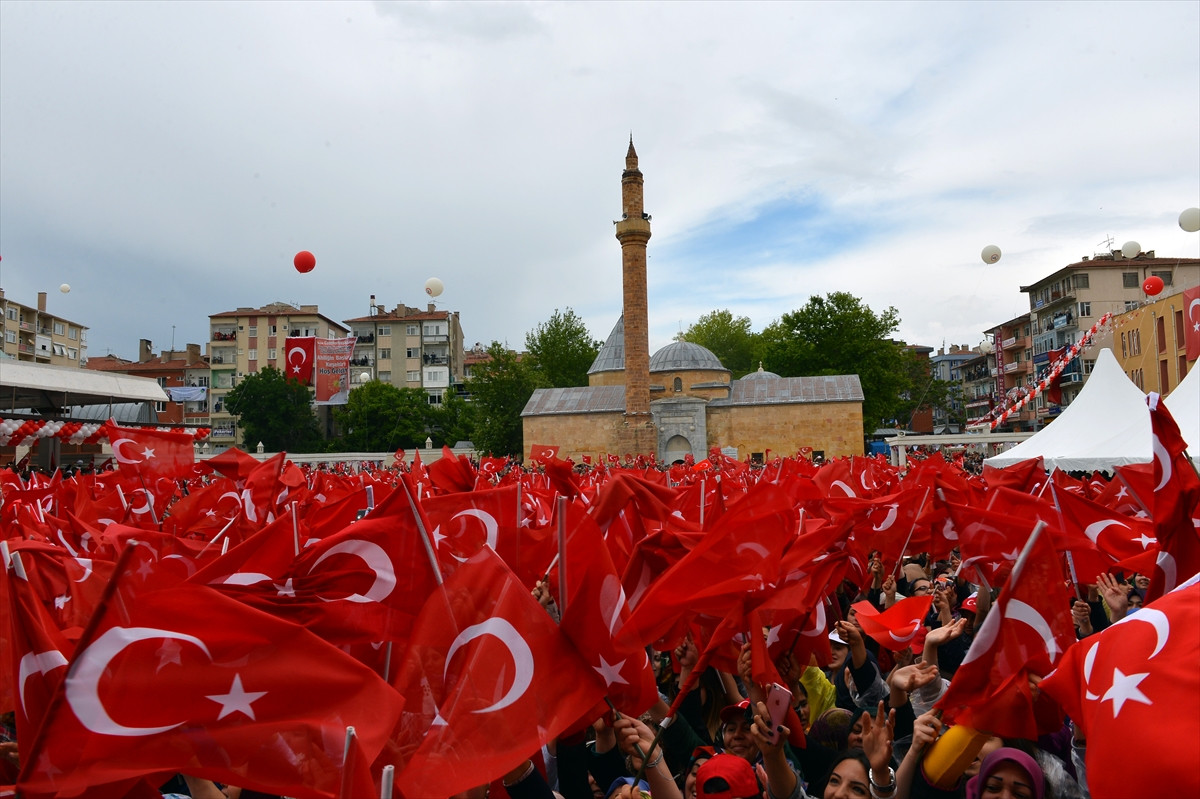 Vatandaşların "Dik dur eğilme Kırşehir seninle" sloganları üzerine Erdoğan, "Gençler bundan şüpheniz var mı? Biz bugüne kadar hiçbir faninin önünde eğilmedik. Biz sadece rükuda Rabbimizin önünde eğildik. Bundan sonra da hiçbir faninin önünde eğilmeyeceğiz. Bize de yakışan budur, olması gereken budur ve biz ecdadımız nasıl mücadele verdiyse öyle mücadele vereceğiz." karşılığını verdi.