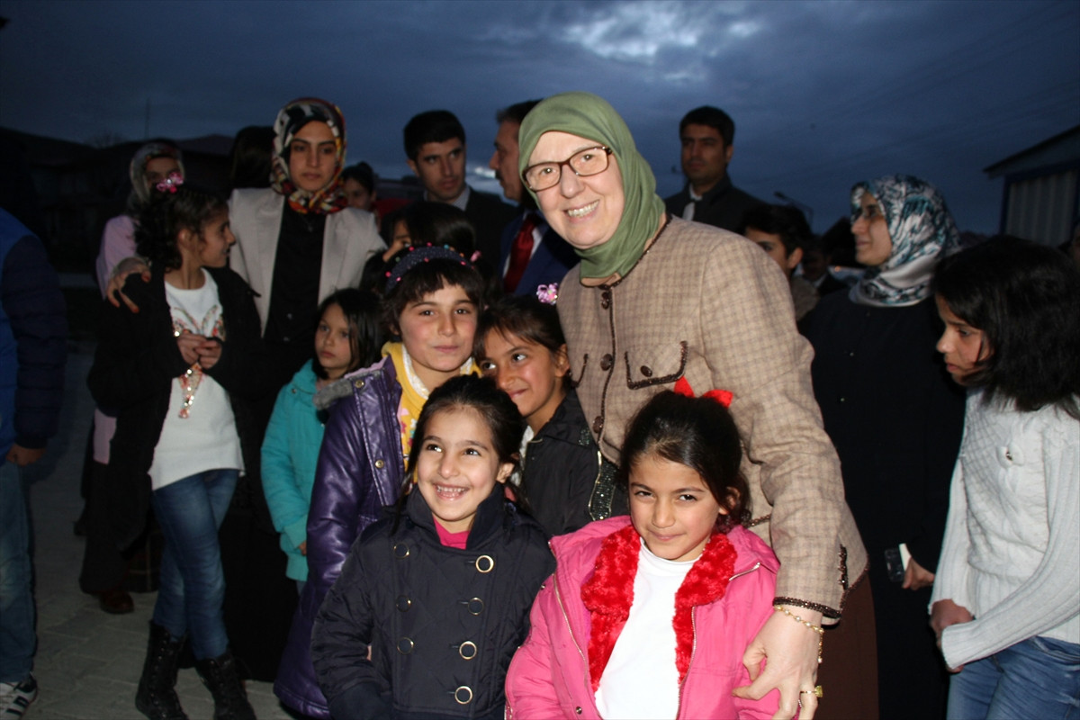 Kendisini karşılamaya gelen çocuklarla ilgilenerek fotoğraf çektiren Ramazanoğlu, çalışmalar hakkında bilgi aldı.