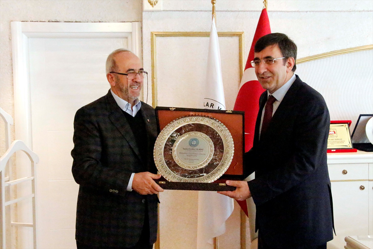 Ziyarette, Elazığ Ticaret Borsası Başkanı Mehmet Ali Dumandağ hizmetlerinden dolayı Yılmaz'a plaket verdi.