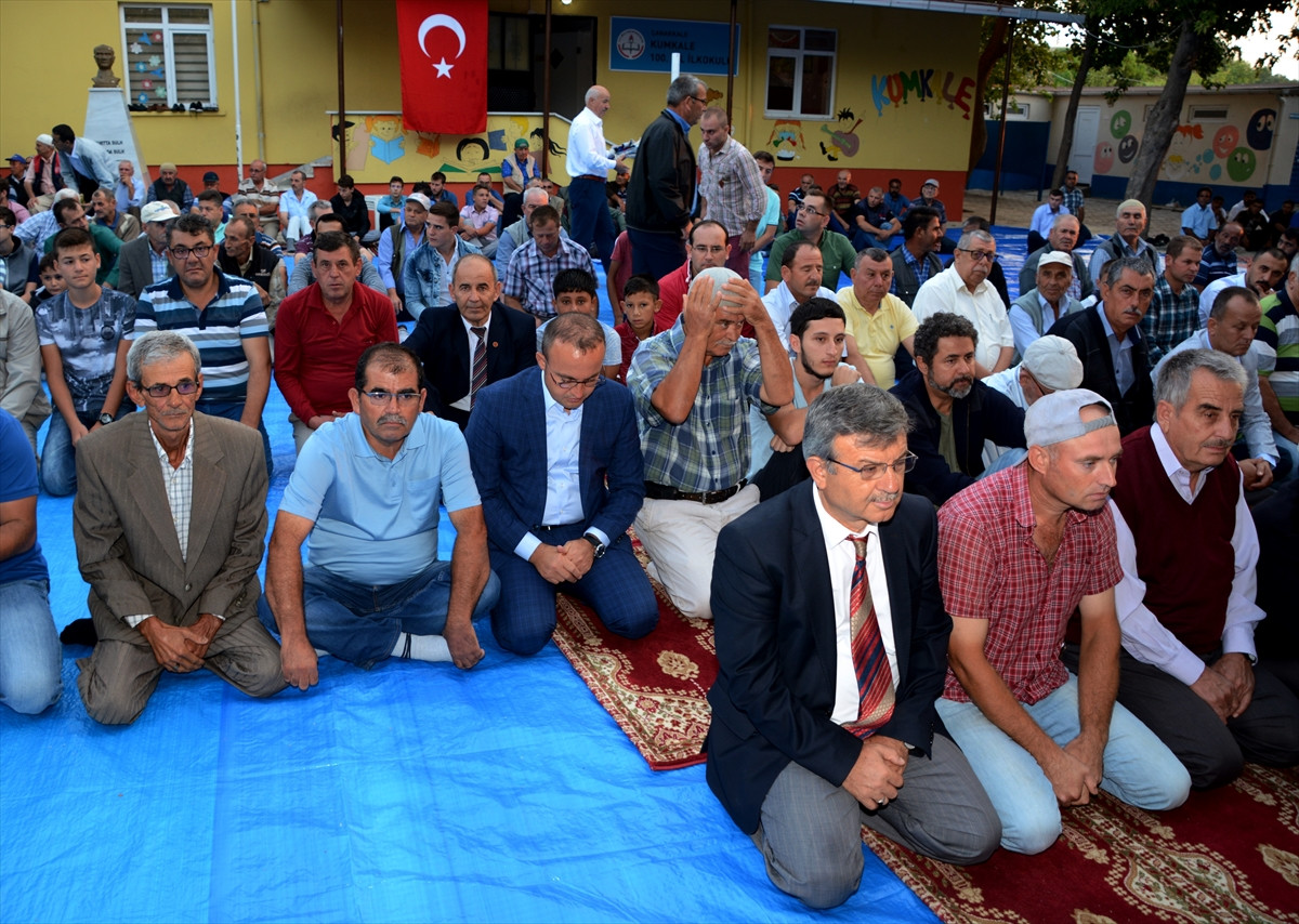 Çanakkale'nin merkeze bağlı Kumkale köyündeki caminin tadilatta olması nedeniyle okul bahçesinde açık alanda bayram namazını kılan Turan, daha sonra vatandaşlarla bayramlaştı, çocuklara harçlık verdi.