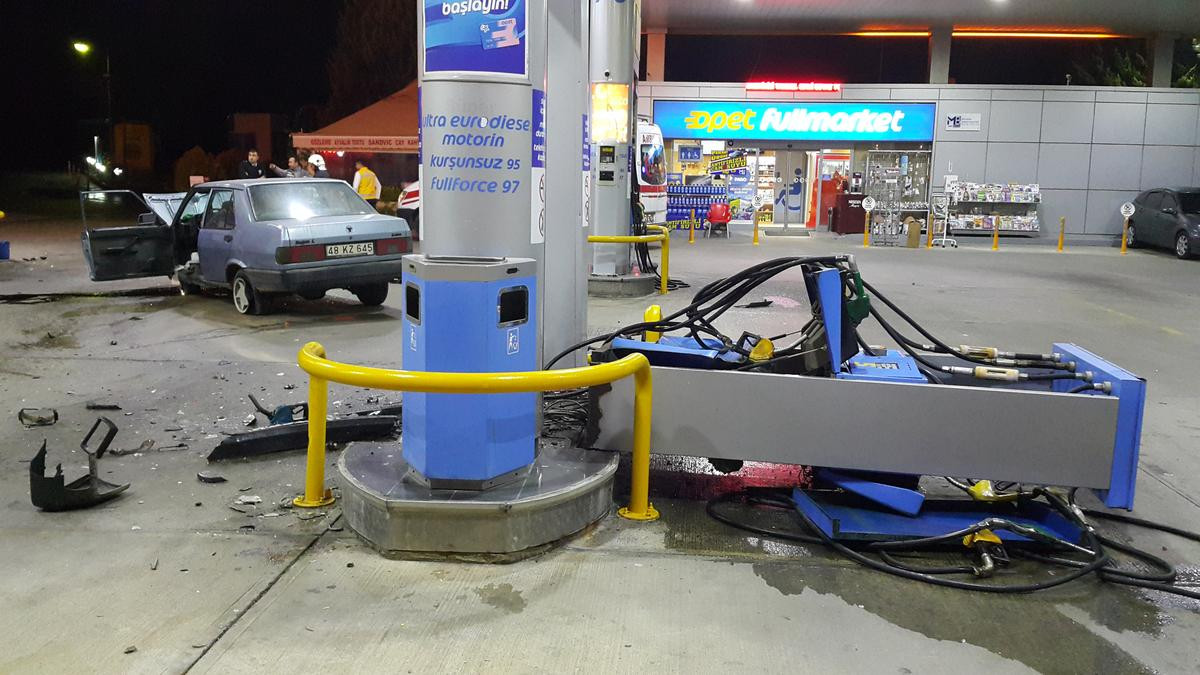 Alınan bilgiye göre, Bodrum-Milas karayolu Kaynar mevkisinde, Aziz Zehir yönetimindeki 48 KZ 645 plakalı otomobil, yol kenarında bekleyen Özgün Kayas'a, ardından akaryakıt istasyonunun pompa bölümüne çarptı.