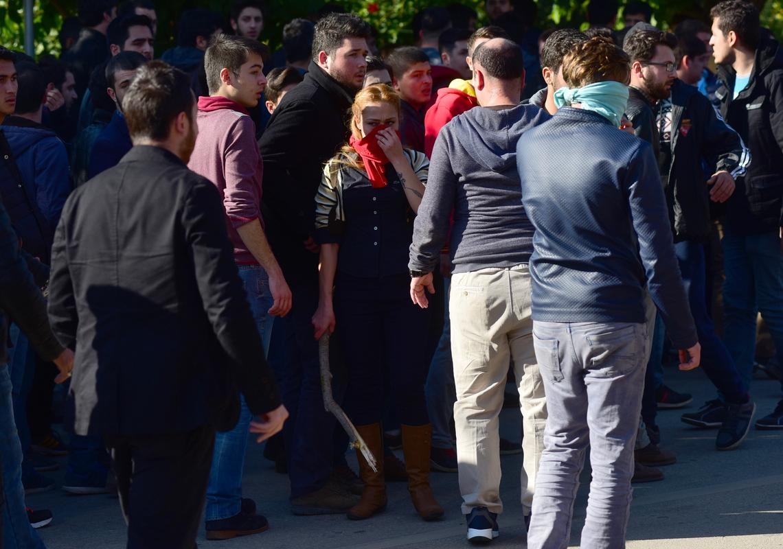 Öte yandan, bu kişilerin eylem yaptığı alanın yaklaşık 500 metre uzağına toplanan karşıt görüşlü bir grup da "kampüste PKK istemiyoruz" şeklinde slogan attı.
