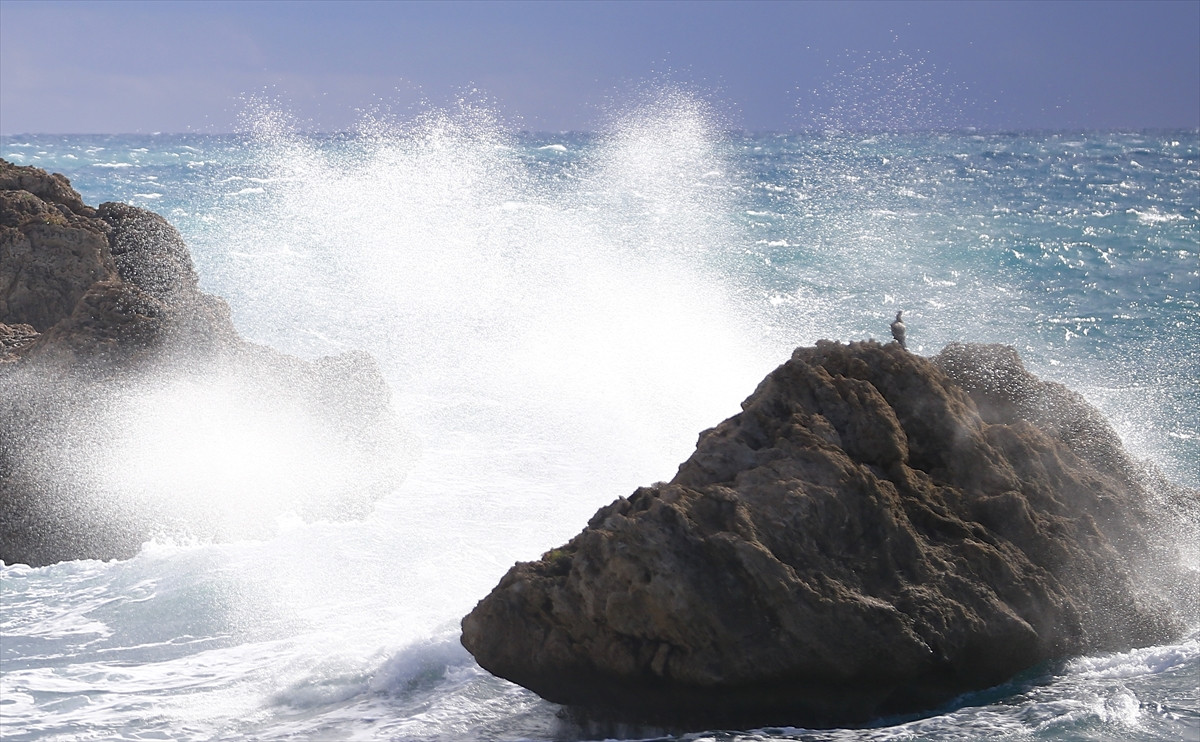 ANTALYA (AA) - Antalya'da kuvvetli rüzgar nedeniyle dalga boyu 5 metreyi buldu.