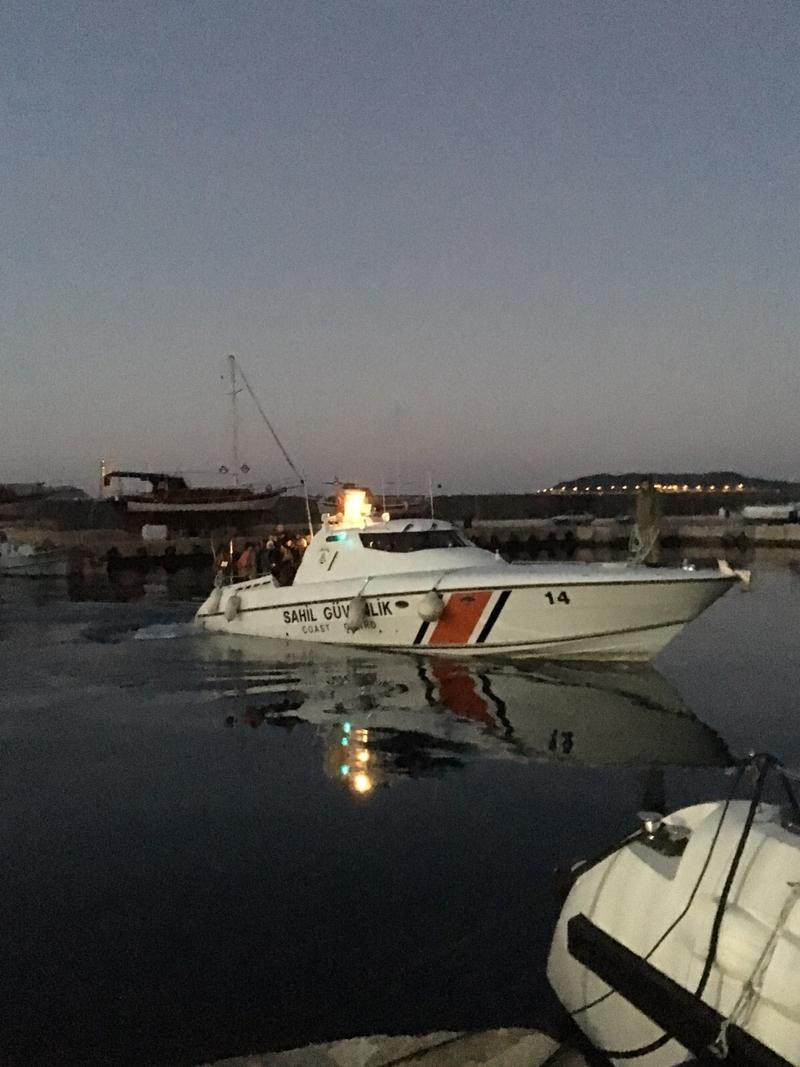 Lastik bottaki 7'si çocuk, 21'i kadın 58 Suriyeli, sahil güvenlik botuna alındı. Suriyeliler, Kaş Limanı'na intikal ettirildi.