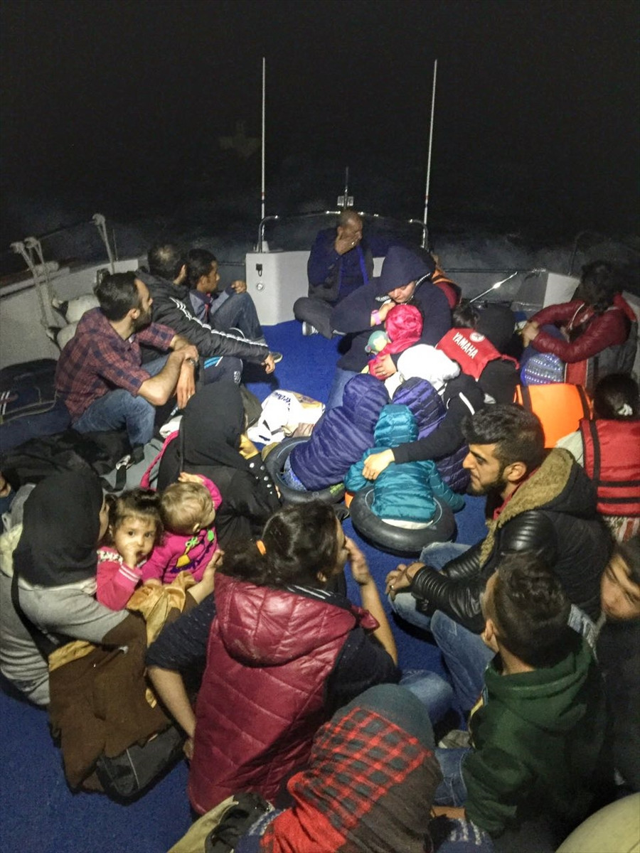 Ekipler, lastik bottaki 12'si çocuk 27 Suriyeliyi, sahil güvenlik botuna alarak Kaş Limanı'na götürdü.