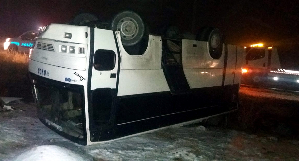 Alınan bilgiye göre, Mahmut Gökoğlan (40) yönetimindeki 68 BH 139 plakalı yolcu midibüsü, Organize Sanayi Bölgesi yolunda buzlanma nedeniyle kayarak şarampole devrildi.