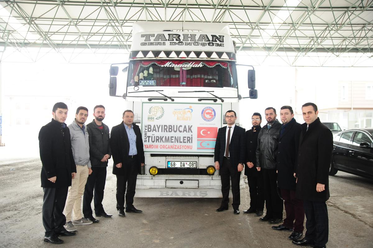 AKSARAY (AA) - Aksaray'da sivil toplum kuruluşları aracılığıyla temin edilen 3 tır insani yardım malzemesi, Suriye'deki Bayırbucak Türkmenlerine gönderildi.