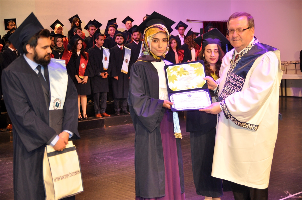 Konuşmalardan sonra, fakülte ve yüksek okullarını ilk üç sırada bitiren öğrencilere protokol üyeleri tarafından başarı belgeleri verildi.