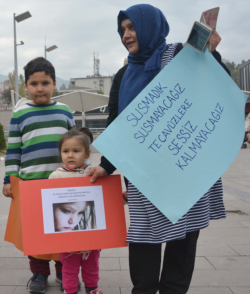 Kent Meydanı'nda toplanan 30 kadın, "Kadın düşmanlığına, cinsel saldırılara sessiz kalmayacağız" yazan döviz açarak, "çocuklara uzanan eller kırılsın, anayız, bacıyız hakkımızı ararız, susmadık, susmayacağız, tecavüze sessiz kalmayacağız" sloganları attı.