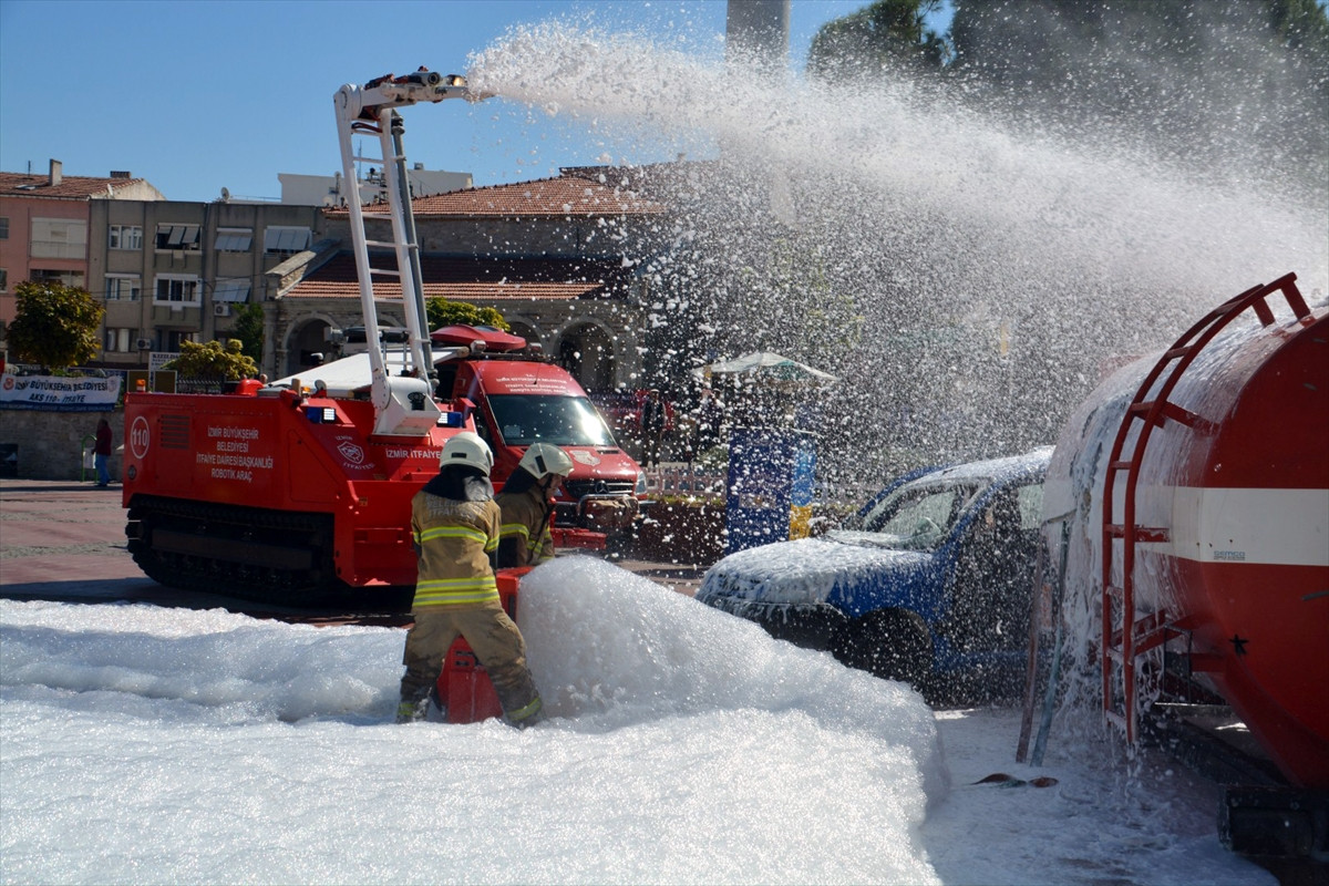 İZMİR (AA) - İzmir Büyükşehir Belediyesi İtfaiye Daire Başkanlığı Kuzey Bölge Grup Amirliği, İtfaiye Haftası etkinlikleri çerçevesinde tatbikat gerçekleştirdi.