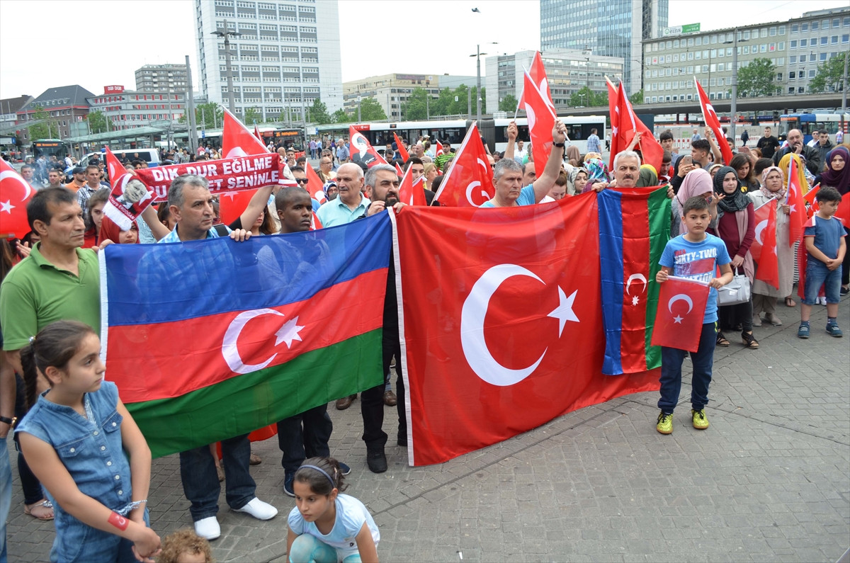 Avrupalı Türk Demokratlar Birliği (UETD) Bremen teşkilatı öncülüğünde, Bremen ana tren istasyonu önünde düzenlenen gösteriye çok sayıda Türk vatandaşı, ellerinde Türk bayraklarıyla katıldı.