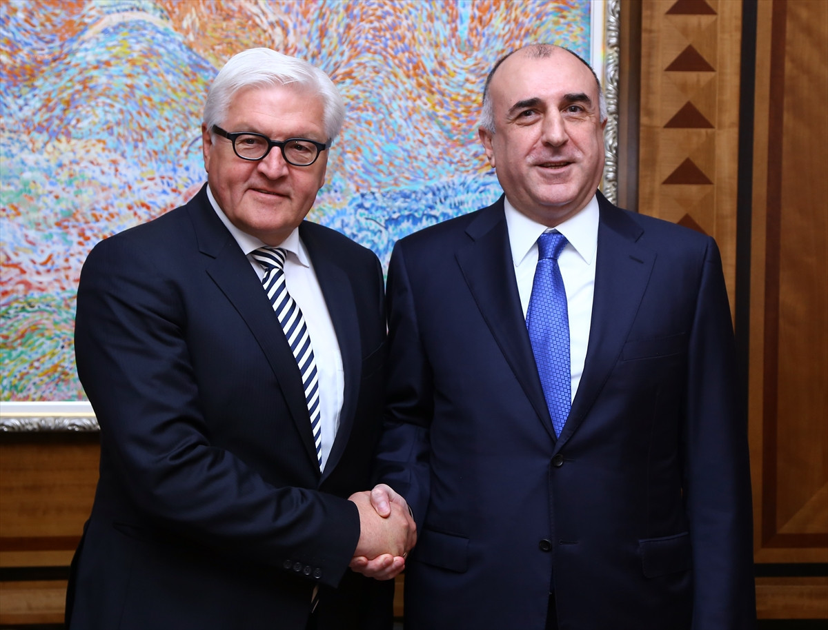 Steinmeier, Ermenistan temaslarının ardından Güney Kafkasya turunun ikinci durağı olarak geldiği Azerbaycan'da Dışişleri Bakanı Elmar Memmedyarov ile görüştü. Steinmeier ve Memmedyarov, ikili ve heyetler arası görüşmenin ardından ortak basın toplantısı düzenledi.