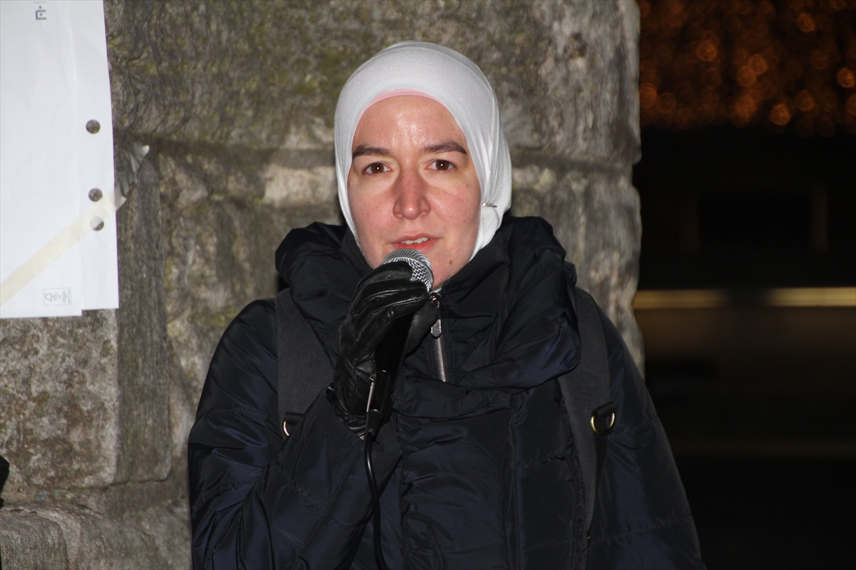 Anma töreninin organize edenlerden Dunya Adıgüzel konuşmasında, birlik ve beraberlik mesajları vererek, "Son dönemlerde yaşanan bazı olaylarda Müslümanlar ile üzerindeki yaşadığımız ülke insanları ayrıştırılmaya çalışılıyor. Ancak kimsenin bu birlikteliği bozmaya gücünün yetmeyecektir" ifadesini kullandı.