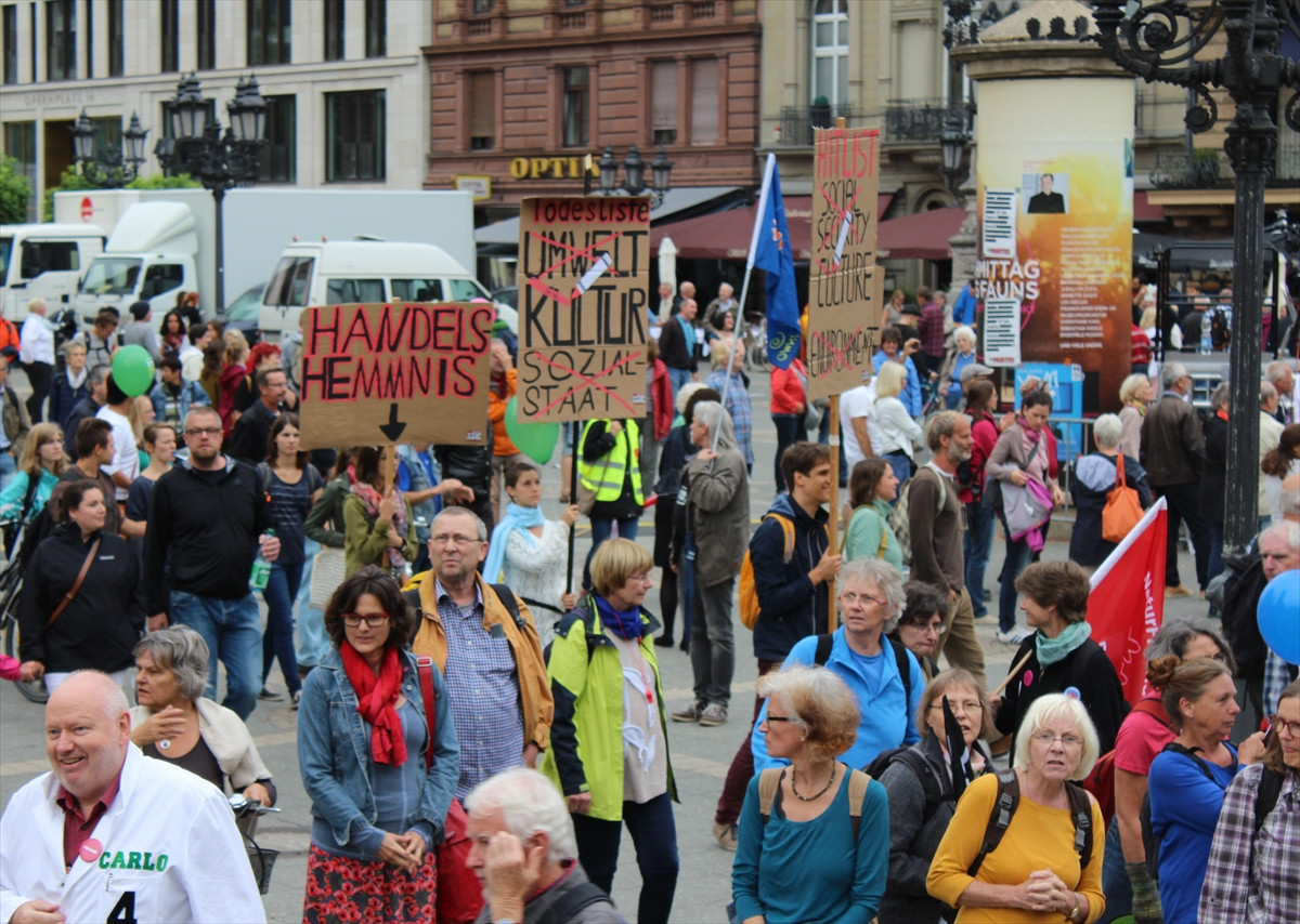 Almanya'nın Frankfurt kentinde ise yaklaşık 25 bin kişi TTIP ve CETA anlaşmalarını protesto etti.