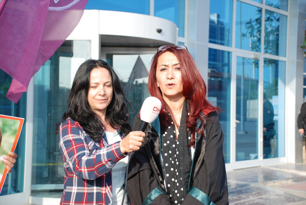 Duruşma sonrası ellerinde Hatun Sürücü'nün fotoğraflarının yer aldığı Kadın Cinayetlerini Durduracağız Platformu üyesi bir grup kadın, adliye bahçesinde eylem yaptı.