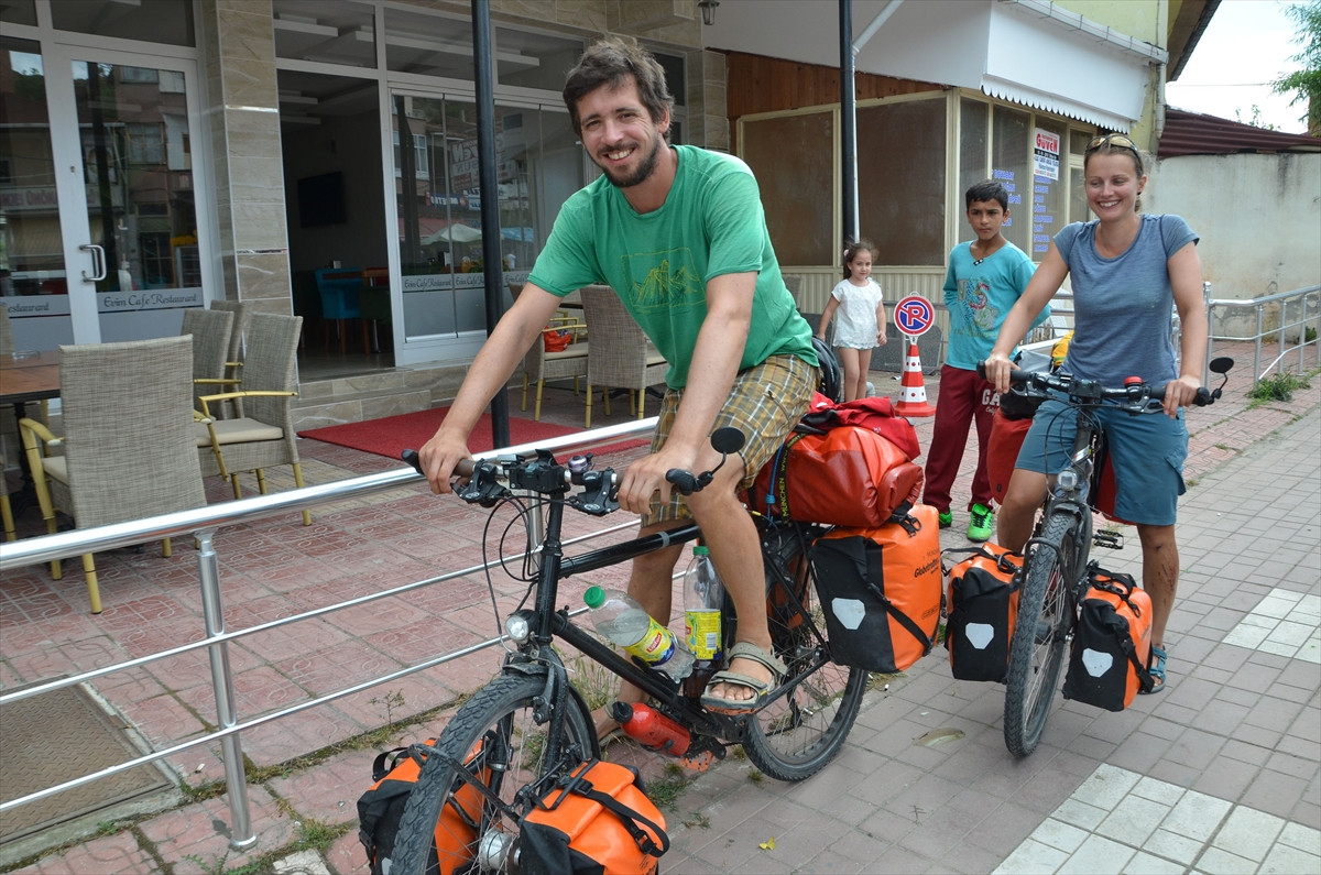 KASTAMONU (AA) - Almanya'dan bisikletle Çin'e gitmek için yola çıkan Florian Harnisch (34) ve Katharina Mader (31) Kastamonu'nun Hanönü ilçesine ulaştı.