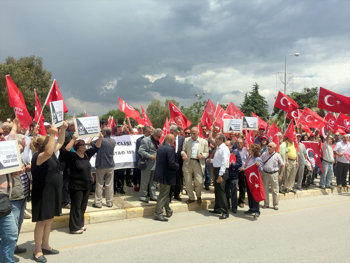 İZMİR (AA) - Vatan Partisi İzmir İl Başkanlığı üyesi bir grup, Almanya'nın İzmir Başkonsolosluğu önünde, 1915 olaylarıyla ilgili Ermeni iddialarını tanımaya hazırlandığı ileri sürülen Almanya Federal Meclisi'ni protesto etmek için eylem yaptı.