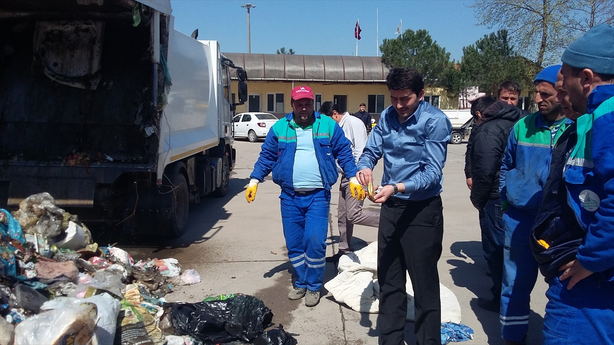 KOCAELİ (AA) - Kocaeli'de, Kartepe Belediyesi Temizlik İşleri Müdürlüğü ekipleri, yorgan arasında çöpe atılan altın kesesini bularak sahibine verdi.