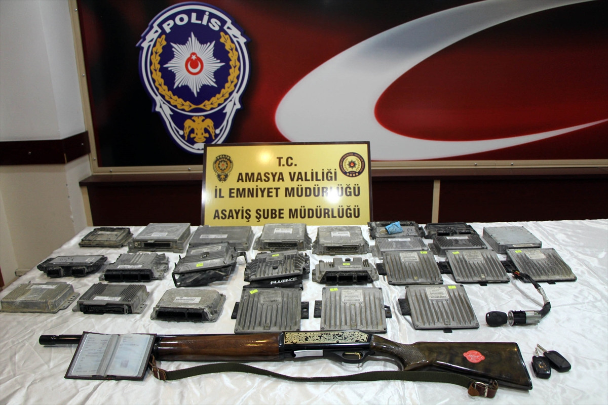 Şüphelilerin ev ve iş yerlerinde yapılan aramalarda 24 adet araç beyni, 1 adet ruhsatsız av tüfeği, 1 adet ruhsatsız silah, 2 adet çalıntı araç anahtarı ele geçirildi.
