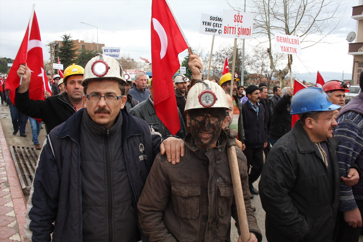 Soma Kömür İşletmeleri AŞ'nin Yeni Çeltek Maden Ocağı İşletmesi'ni kapatarak 300 işçiyi Soma'daki maden ocağında görevlendirmesi kararına tepki gösteren maden işçileri ve yakınları, maden işletmesinden yola çıkarak Suluova merkezine kadar yürüyüş yaptı.