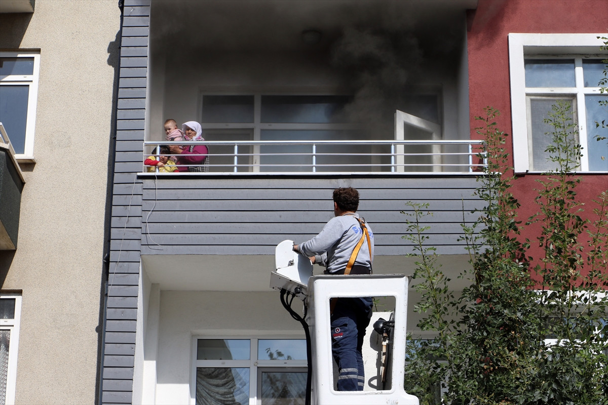 Bu sırada evin bulunduğu sokaktan geçen ve Karadaş'ın yardım çağrısını duyan YEDAŞ arıza ekipleri, vinç ile balkona çıkarak çocukları indirdi. Vatandaşların haber vermesi üzerine gelen itfaiye ekipleri de yaşlı kadını kurtardıktan sonra yangına müdahale etti.