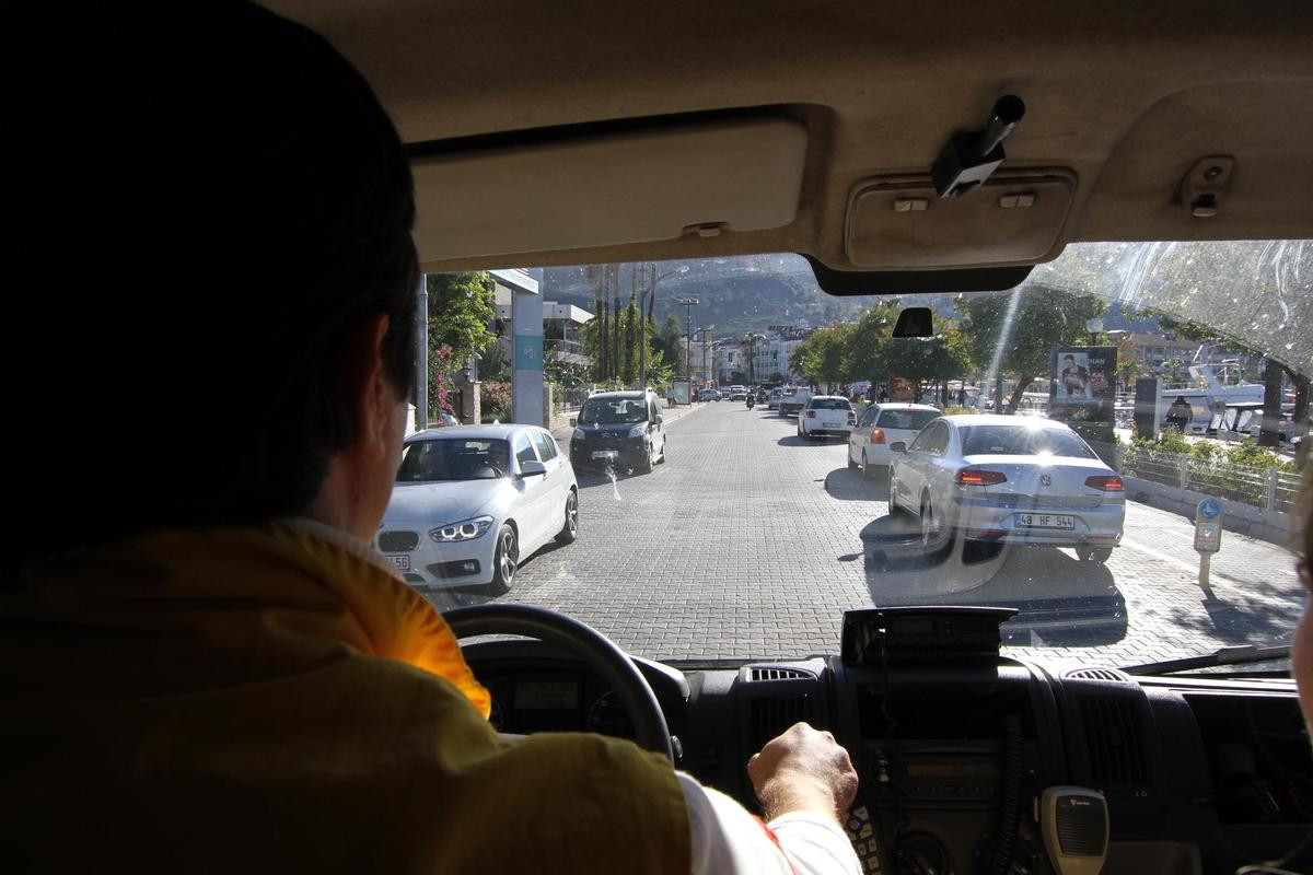 MUĞLA (AA) - Fethiye'de senaryo gereği kazaya giden ambulans şoförünün trafikte karşılaştığı sorunlar gazeteciler tarafından görüntülendi.