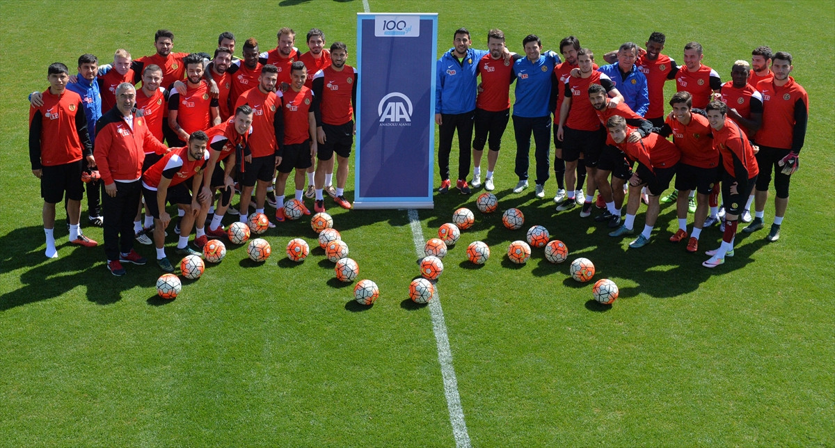 Eskişehirspor Vali Hanefi Demirkol Tesisleri'nde gerçekleştirilen antrenman öncesi çim sahada toplarla oluşturulan AA logosunun etrafında bir araya gelen siyah-kırmızılı futbolcular ve teknik heyet, fotoğraf çektirdi.