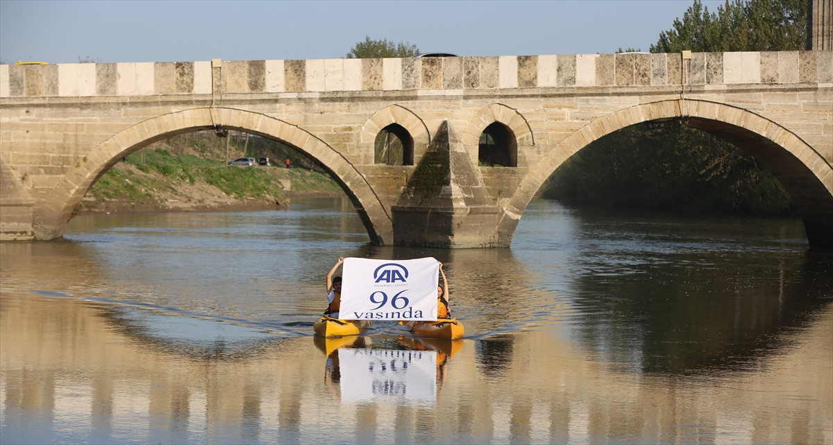 Sporcular tarihi Tunca Köprüsü'nün ayakları altında ajansın kuruluş yıl dönümü dolayısıyla "Anadolu Ajansı 96 Yaşında" yazılı pankart açtı. Sporcular nehirde bir süre kürek çekerek pankartla dolaştı.
