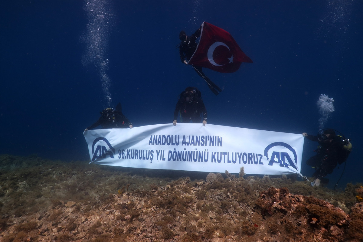 Kuzey Mavi, İda, Diving Team, Free Diving ve Badem Dalış Merkezlerinin üyelerinden oluşan 30 kişilik grup, bir tekneyle açıldıkları Ege Denizi'nde sezonun ilk dalışını gerçekleştirdi. Eğitmen ve öğrenciler, denizin içi ve yüzeyinde 5 metre uzunluğundaki "Anadolu Ajansı'nın 96. kuruluş yıl dönümünü kutluyoruz" yazılı pankart açtı.